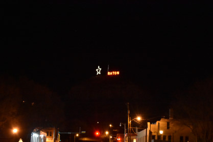The famous star and the illuminated Raton sign up on the hill above town. We went through Summit Hill and we were then in Colorado. To finish the evening, we watched a Jethro Tull live DVD. Steven made up the bed and we were in bed long before La Junta and I slept until just after Newton, Kansas.