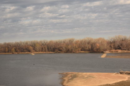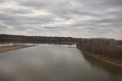 The Kansas River, known locally as the Kaw River, was seen on a mostly cloudy morning.