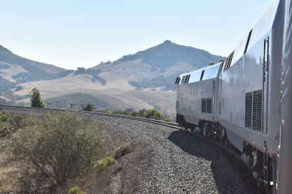 The train on the Goldtree Horseshoe Curve before the train reached San Luis Obispo, our next fresh air stop.
