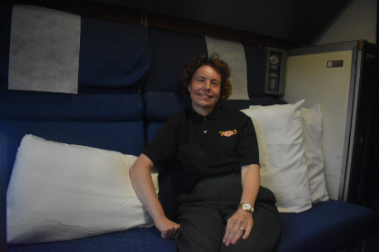 Elizabeth starting her new rail mileage. Next stop is our fresh air break at Eugene.