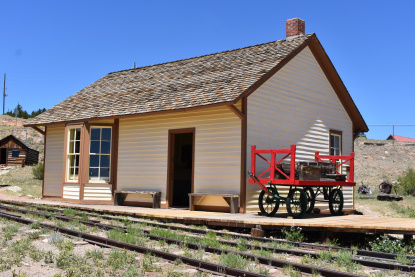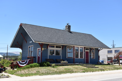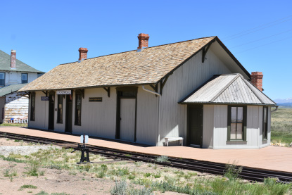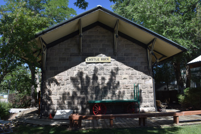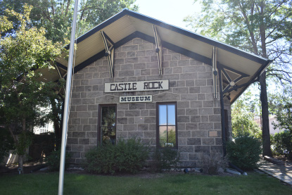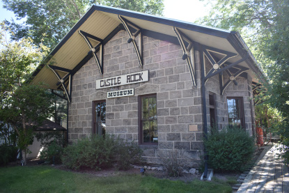 The former Rio Grande depot in Castle Rock built in 1875. It was moved from trackside to its present location in 1970, and was carefully restored by the Castle Rock Historical Society in 1996 for use as a local history museum.