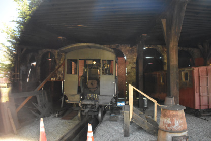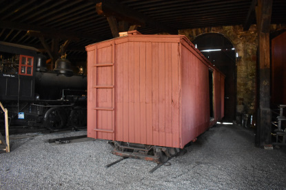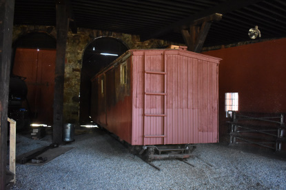 Boxcar under restoration inside the roundhouse.