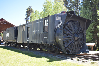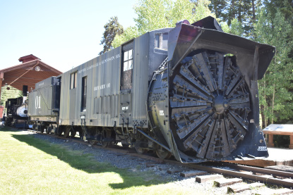 Denver, Leadville & Gunnison Railroad rotary snowplough 1 built as a coal-burner by Cooke Locomotive Works in Paterson, New Jersey for the White Pass and Yukon Railway in 1901. It was converted to an oil-burner sometime between 1953 and 1956 and moved to Denver in 1988, where in underwent repairs. Six months later, it was relocated to Breckenridge. It is one of only five known narrow-gauge rotaries still in existence.