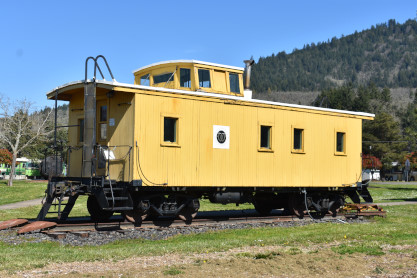 The Weyerhaeuser Forest Products caboose 159 which was donated to the Town of Lowell.