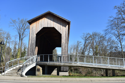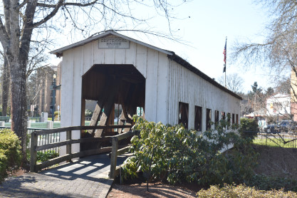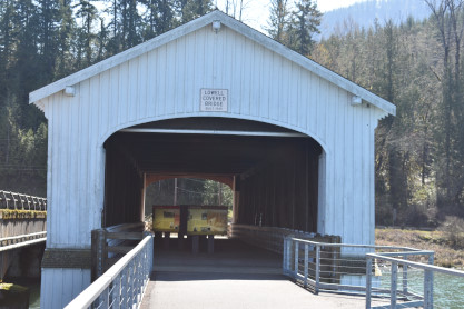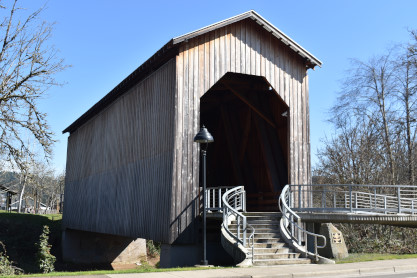 Chambers Covered Railroad Bridge which is the last covered railroad bridge west of the Mississippi. It was built in 1925 to carry rail traffic hauling logs from the Lorane Valley to the J.H. Chambers Mill.