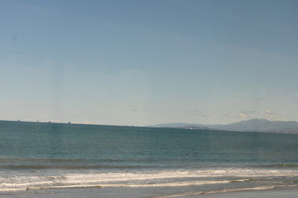 Santa Susana Southen Pacific station before we waited for Pacific Surfliner 774 for fifteen minutes. Our next station stop was Simi Valley then we rolled west to Oxnard and reached Ventura when they called me for lunch. I waited at the door and the steward told me to pick my table so I chose an ocean side table since I wanted to take some pictures during lunch. Being seated alone was odd but I came to enjoy it.