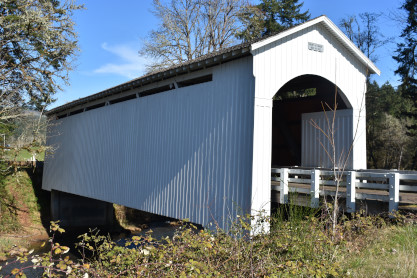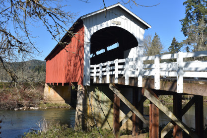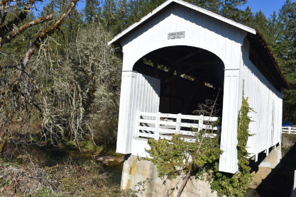 3/20/2020 We woke up and Elizabeth went to MacDonald's to get breakfast while I found stations and steam engines to photograph while here in southern Oregon. We left the hotel and headed to our first covered bridge of the morning.