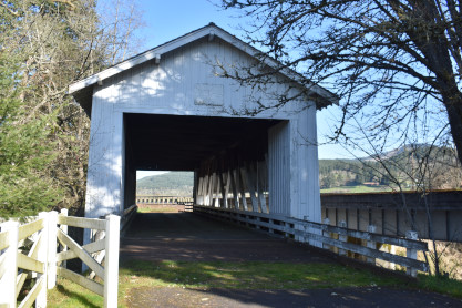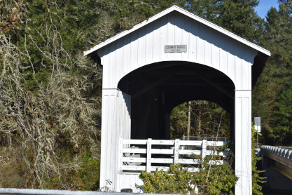 The Dorena Covered Bridge was the last one in the Cottage Grove cluster. It was built in 1949. From here we drove down Interstate 5 to Sutherlin after stopping at a rest area.