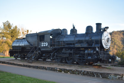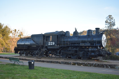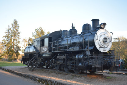 Southern Pacific 0-6-0 1229 on display in Stewart Park in Roseburg. It was built by Lima Locomotive Works in 1914 and donated to the city in 1958. This locomotive is famous for starring in the 1921 short film "The Goat" with Buster Keaton. We noticed that one side of the engine gives the correct number but the other side has 229 on it. Elizabeth and went to KFC for dinner which we took back to the hotel then worked on the story and caught up on our e-mail and other items before calling it a night.