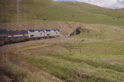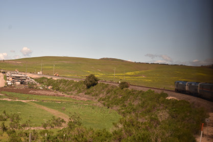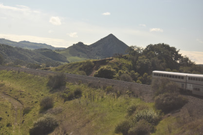 The Coast Starlight took the big turn at Casmalia. The train ran down to Gaudalupe then onto Grover Beach and Pismo Beach, through the canyon and almost to San Luis Obispo where our bad luck with trains continued and for the third time, we were delayed by our sister train, southbound Coast Starlight 11, for ten minutes.