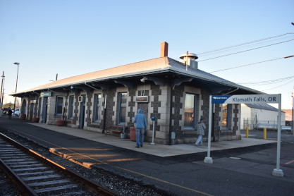 The Klamath Falls Southern Pacific station built in 1916. I bought a Portland to Kelso-Longview coach ticket to make it easier for Elizabeth to pick me up there and caught up the story while we waited for departure time.