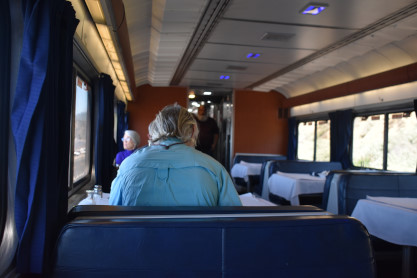 Cosst Starlight 14 3/18/2020I boarded the Sleeper with Reneee as my Sleeping Car Attendant, settled into my room and relaxed until the train departed Los Angeles. The conductor scanned the tickets then the lounge car made his announcement. Next the Dining Car Steward made his, telling us that every party in the dining car gets their own table so I would be eating my meals alone. The train made the Burbank Airport stop followed by Van Nuys.