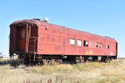 Canadian National passenger car 59340 "White Court", later used in maintenance-of-way service as a kitchen-dining car, east of the grade crossing in Strasburg. From here, we drove to Limon and Elizabeth's first time to the Limon Heritage Museum & Railroad Park Complex.