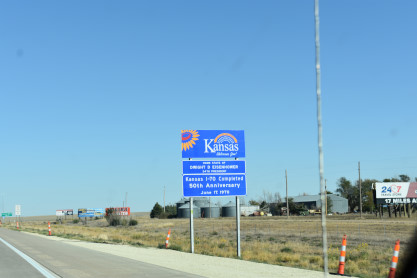 First we entered Kansas and saw a Kyle Railroad train stopped along the tracks. Since Elizabeth lost my Kansas map in the rental car and we could not find it, we stopped at the Kansas Welcome Center and picked up a state map. We got on a local road and back-tracked about five miles, finding a grade crossing that took us directly to the train.
