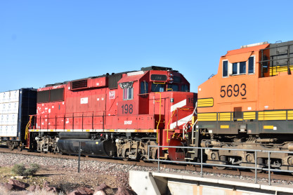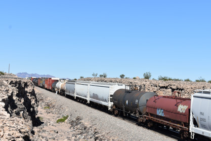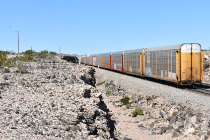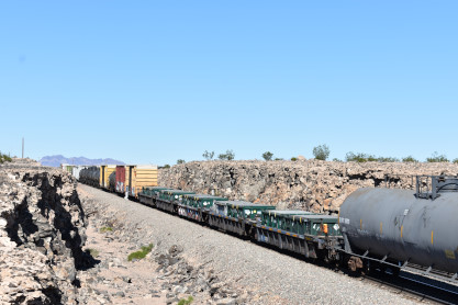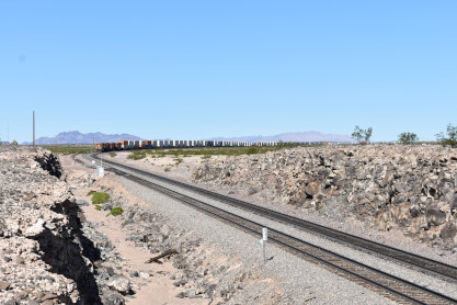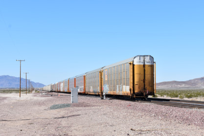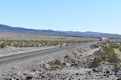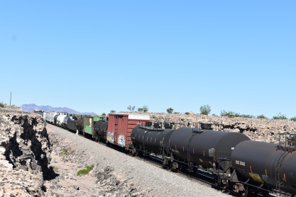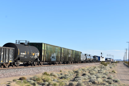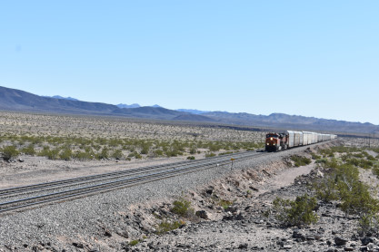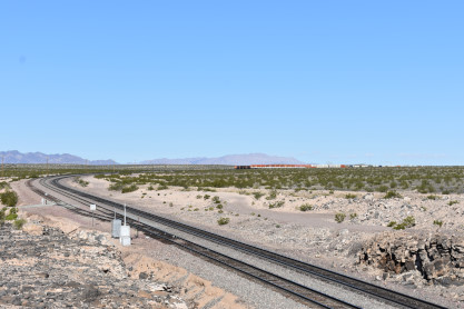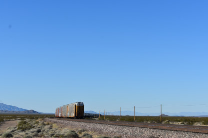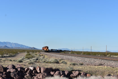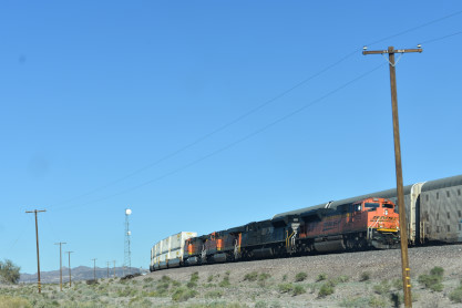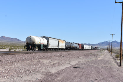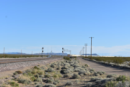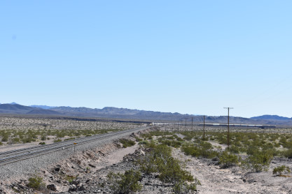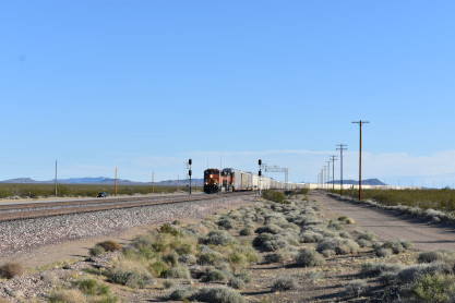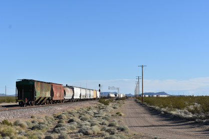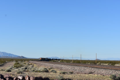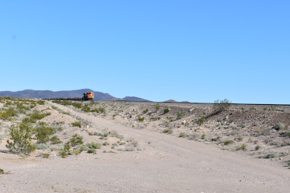 We left the Needles Motel 6 and went to McDonald's where I had hot cakes and sausage. Our first train was at Goffs, which was a westbound that we paced and overtook it by quite a distance then set up across the tracks near West Goffs.