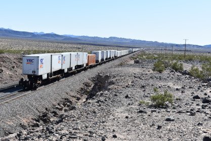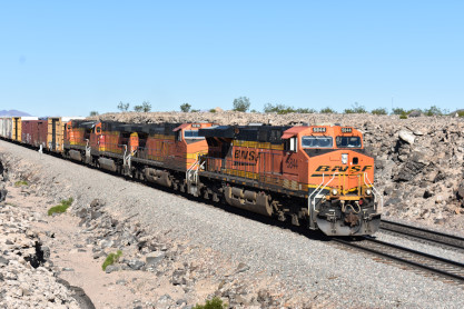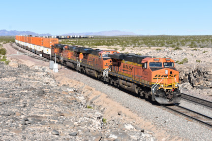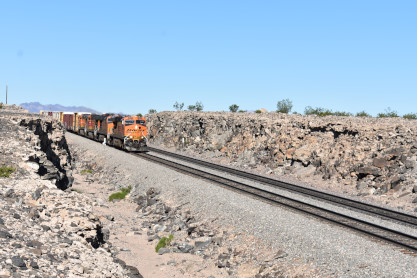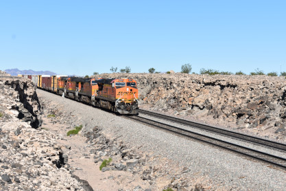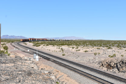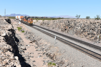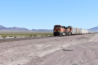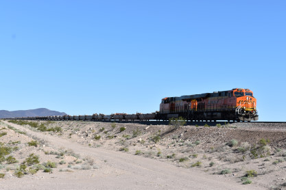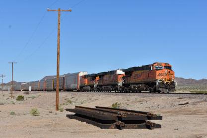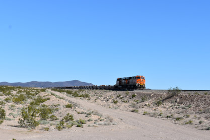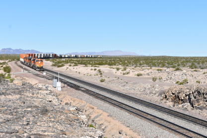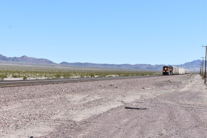 BNSF 6661 West. We then took Interstate 40 to Kelbaker Road and went through Amboy on old Route 66. Near Bagdad, we spotted another eastbound train.