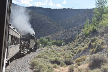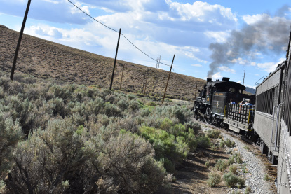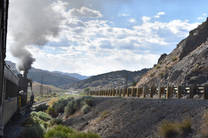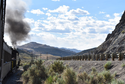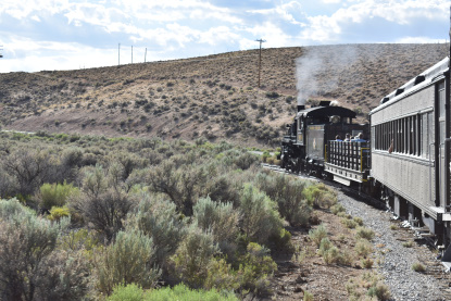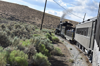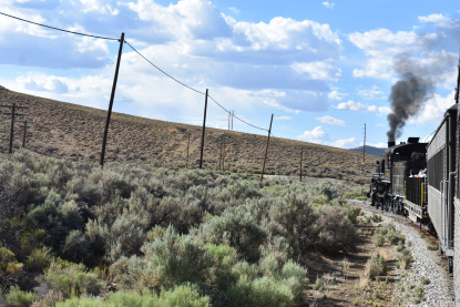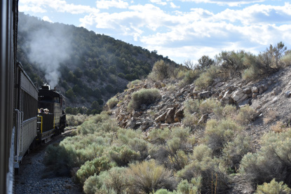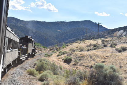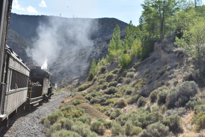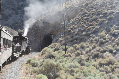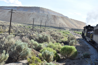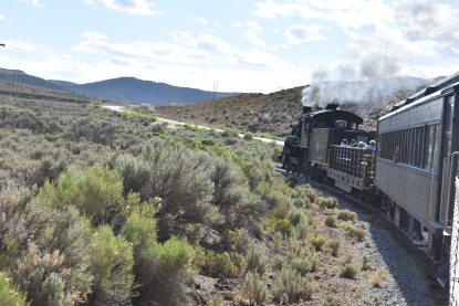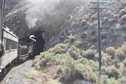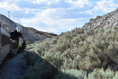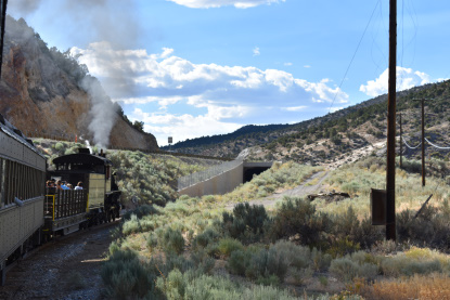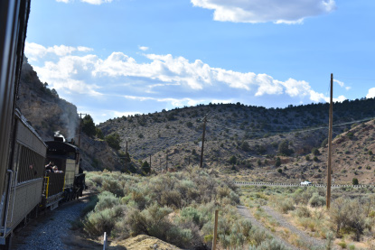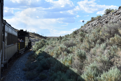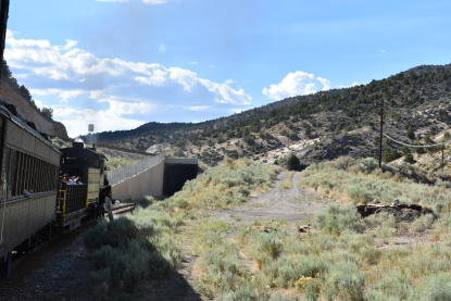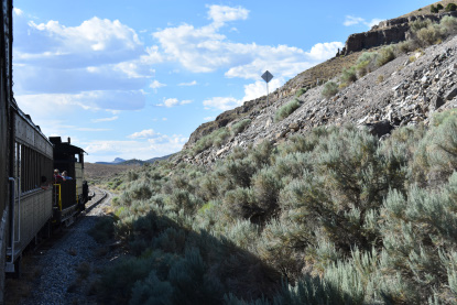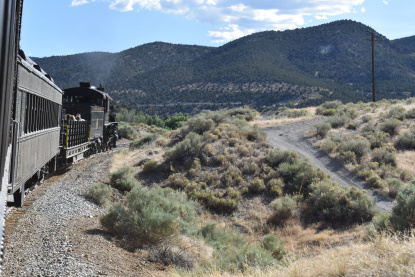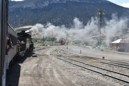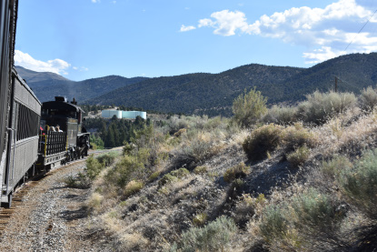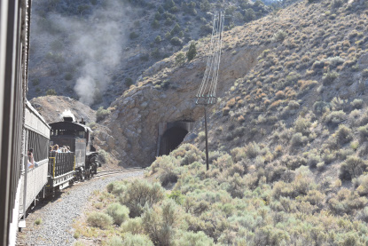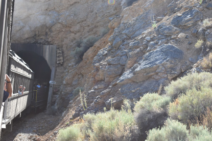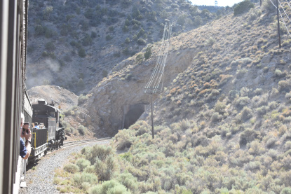 The train takes the northeast leg of the wye and with us now on the rear of the train, I had to go and tell Elizabeth to switch places again and come back after we go through the tunnel. I would relax on the way back to East Ely while Elizabeth would shoot all the pictures she wanted. We returned to East Ely and after detraining, I drove Elizabeth over to the White Pines Museum.