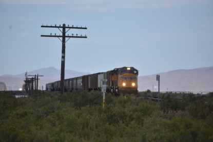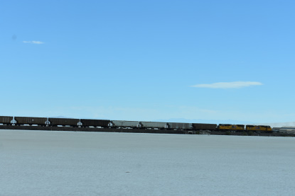 The steam engine and the Tooele station. From here, Elizabeth drove and at the Morton Salt crossing along Interstate 80, we stopped for this train.
