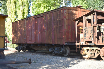 Tooele Valley Railroad outside-braceed wooden caboose hat was transferred to the TV in 1937 from the Butte, Anaconda & Pacific Railroad.