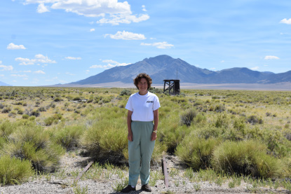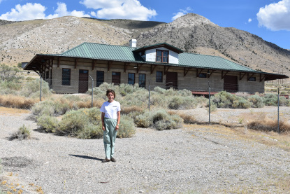 Elizabeth at the Nevada Northern Railway tracks.