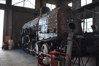 Nevada Northern 2-8-0 81, built by Baldwin in 1917, under restoration. 81 hauled both freight and passenger trains and wass donated to the White Pine Public Museum in 1960 before returning to Ely in 1990.
