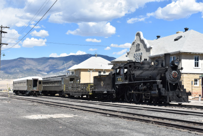 My first picture was of an old friend, the Nevada Northern 4-6-0 40 built by Baldwin in 1910. It operated mainly between Cobre and Ely until passenger services were scrapped in 1941. It was then tried on freight trains, but its large drivers did not provide enough tractive effort to make it viable. So, it was retired, except for occasional use on passenger excursions, and was donated to the museum in 1986 along with the rest of the railroad equipment at Ely. Beginning in 2002, it underwent a thorough inspection and overhaul that completed in early 2005. It then returned to service, and provides both passenger excursions and engineer rentals.