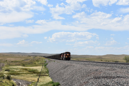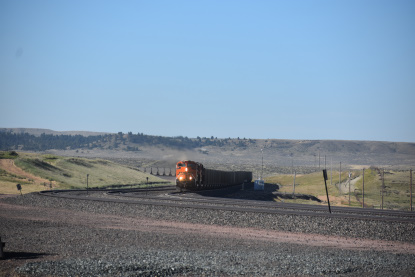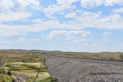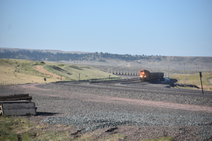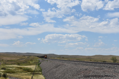 We woke up at the Super 8 in Douglas and after packing, went to McDonald's and used the drive-through, picked up breakfast and drove to the Douglas Railroad Museum and ate it in their parking lot. From here, we headed out on Wyoming 59 and turned right on Bill Hall Road and once we arrived at the crossing of the BNSF line, we parked and waited for a few minutes.