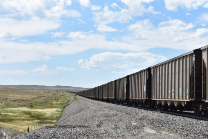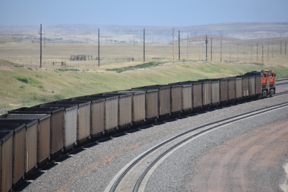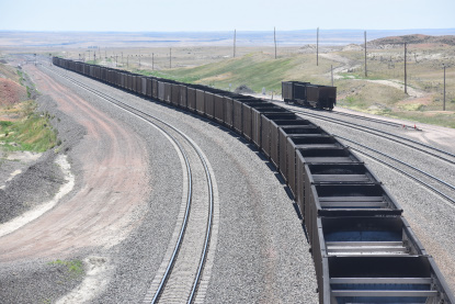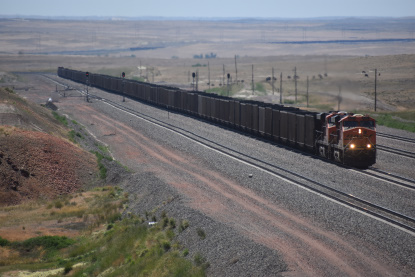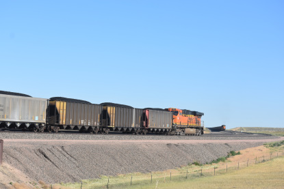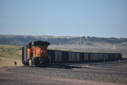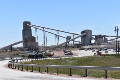 The sign for the Black Thunder Coal Mine, the largest open pit coal mine in North America.