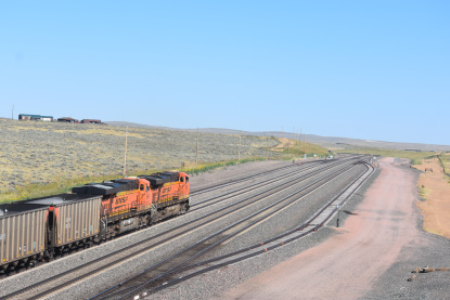 Elizabeth and Burlington Northern U30C 5802. From here we drove Wyoming Highway 51 east.