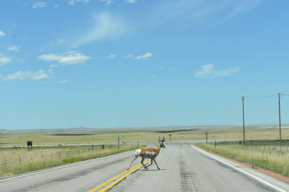 The Pronghorn Antelope were all over the highway at several places on our way to Gillette. We stopped at Walmart so Elizabeth could get more film then used the drive through at KFC to get linner before we drove east to a place I had been before to eat our meal.