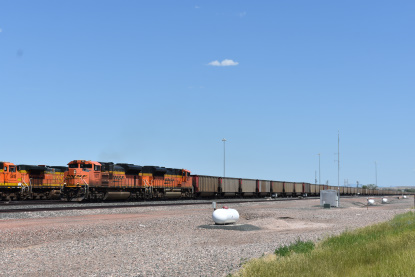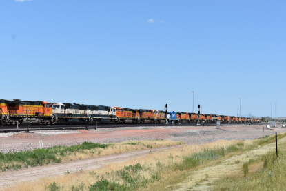 BNSF 6339 East with DPU BNSF 6715 at County Road 201, MP 560.3.