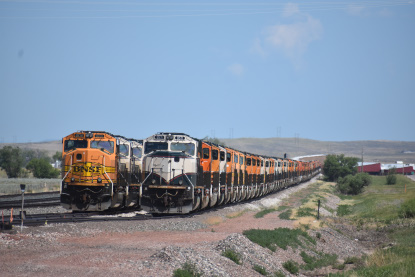 BNSF 9211 West with DPU BNSF 5870 at Donkey Creek Yard.
