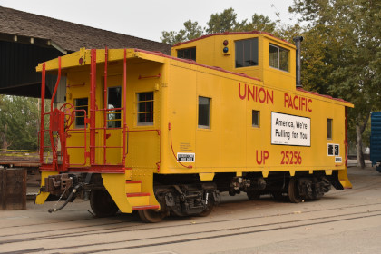 Union Pacific caboose 25256, built by Union Pacific in 1952 as Union Pacific 3956, in Old Sacramento. From here we walked over to the Light Rail station where we would ride the Gold Line to Historic Folsom.