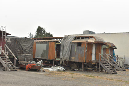 Equipment from the Golden Gate Railroad Museum was moved from Niles Canyon to here earlier this year. From here we drove to Petaluma for a railroad station I knew about and we were surprised again.