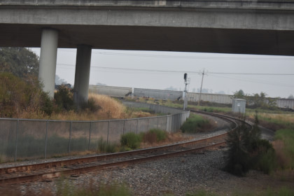 Our TripSince I had watched the video of how get Clipper cards from a SMART machine, I bought us two tickets and loaded $20 each on them while Elizabeth dealt with the parking problem. There were no machines in the unpaved parking area but you still had to pay for parking. Since she does not use apps, she called the toll-free number. The agent required her to register for Park Mobile and told her that he needed a zone number to complete the transaction. 42 was the number for St. Cloud, Minnesota which did not do her any good since we are in California. On the sign giving the limited parking information is a five-digit zone number which she found by walking back down the platform. With that number and the license plate number, the transaction was able to be processed. All that because SMART is not as smart as they should be and need to have parking meters or a centralized drop box for funds at each station. If BART can have them at their stations, SMART can have it at theirs. The fee for parking is very reasonble at $2 for a day but it was an unnecessarily frustrating and time-consuming process. What would we have done if we had been running late or had no cell phone, never mind no smart phone? I calmed Elizabeth down and it was now time to enjoy the trip, handed her her Clipper card and off we went down the tracks after a few pictures.