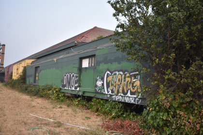 The former Southern Pacific station in Schellville built in 1901. I saw tracks going across the road and thought if I was going to hide railway equipment in Schellville, I might hide it down these tracks. So Elizabeth and I went to have a look and were we surprised at what we found.