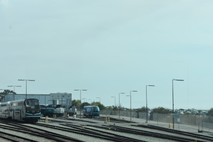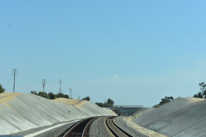 A new set-out track for the first train of the day is being built west of Irvine. We realized that Elizabeth had forgotten to turn on the air conditioning in the apartment after she had turned it off. Not wanting her to come back to a hot apartment on the record-breaking temperature day of the year of 108 degrees, I told Norm I needed to get off in Santa Ana and he agreed to do that. So at Santa Ana, we went onto the back platform, he opened the trap and I climbed off, thanked him for the great trip and went home and turned on the air conditioning and waited for Elizabeth to get back home. She continued on to Los Angeles and just made the connection with Metrolink 666. She was delayed in Orange by Metrolink 860 so my wait for her in Santa Ana was extended but I sat in the car with the engine on and the air conditioning blasting, so I was fine. She arrived, got into the car and we returned home to a cool apartment on a record-breaking day, shattering the former record of just 93 degrees, so a fifteen degree higher day that we all survived. It had been a great trip back aboard a private car during the time of the Covid virus. We all wore masks which made for a far more interesting trip than normal.