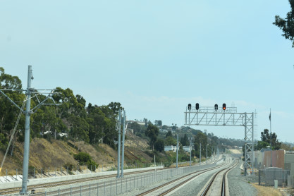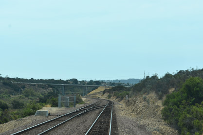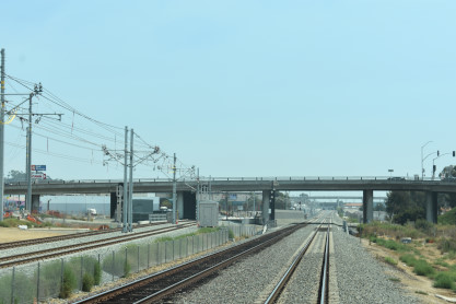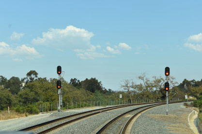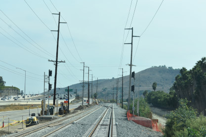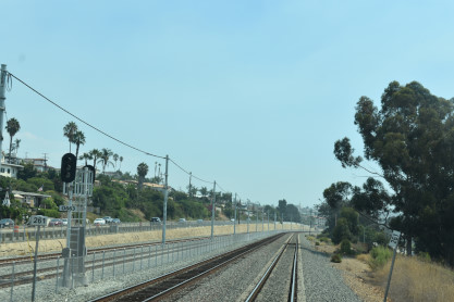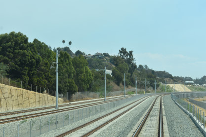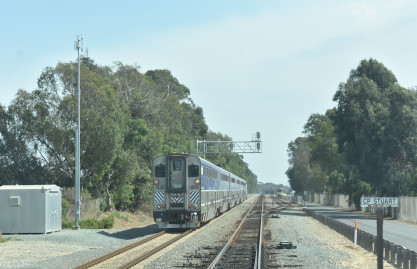 The Sprinter tracks join our route and an eastbound Sprinter heads for Escondido.