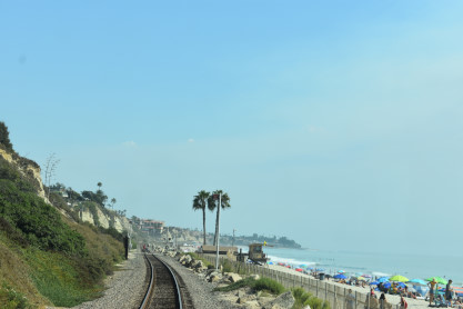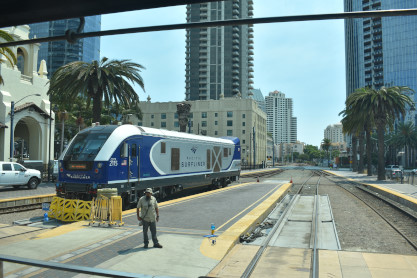 The train started to move and we see the protection Surfliner engine in San Diego.