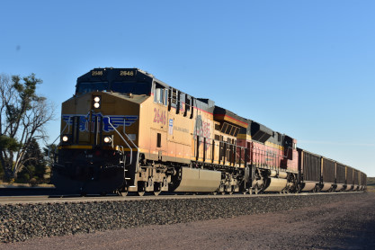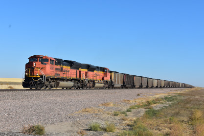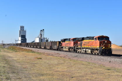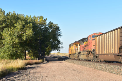 Elizabeth and I packed up the rental car and checked out of the Alliance Hotel and Suites having had a restful stay last night. We repeated MacDonalds then filled the rental car with petrol for the last time and started the trip back to Denver. We caught up to a BNSF loaded coal train so I had some pictures to take once we got ahead of him.