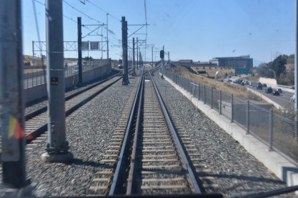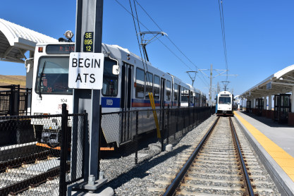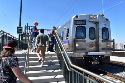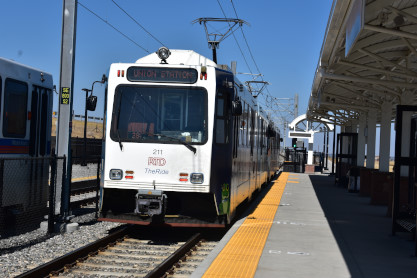 The author getting his new rail mileage. The train stopped at the new stations of Sky Ridge and crossed Interstate 25 to Lone Tree City Center. This reminded me of how Santee was when the San Diego Trolley first built out to it because it was in the middle of nowhere and no development around. Our last stop was Ridgegate Parkway where we detrained.