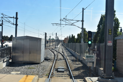 We boarded this R Line train to Ridgegate Parkway. This was a new line both of us as this was being built at the time of the 2016 National Railway Historical Society Convention. So these stops are new Fitzsimons, Colfax, 13th Avenue, 2nd Avenue-Abilene, Aurora Metro Center, Florida, Illif, Nine Mile and Dayton.