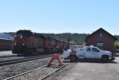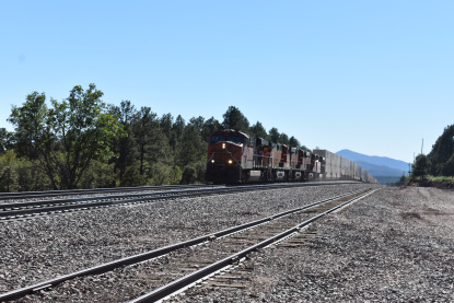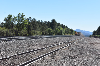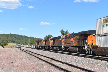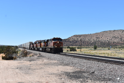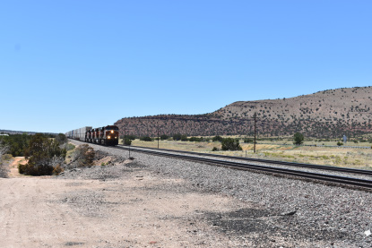 BNSF 5967 East at Flat Rock Road in Seligman. We switched drivers with Elizabeth driving us to Williams where we first stopped at the Grand Canyon Railway's headquarters.