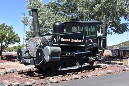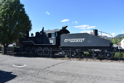 Manitou and Pike's Peak Cog Railway 4, built by Baldwin in 1897, on display in Williams. This is a temporary display which arrived in March 2020 and is here until the renovation of the railroad is completed in 2021.