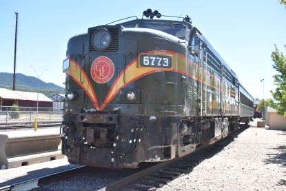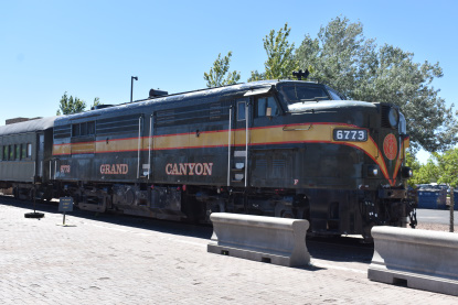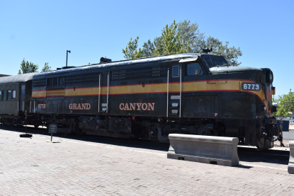 Grand Canyon Railway FPA-4 6773, built by Montreal Locomotive Works in 1959 as Canadian National 6773, on display. We then went to Rod's Steakhouse for an early dinner where I had a top sirloin which was excellent and my bride Elizabeth had a chef's salad. We switched drivers again and I drove us east on I-40 where we caught another train at Parks Road.