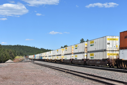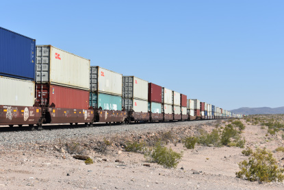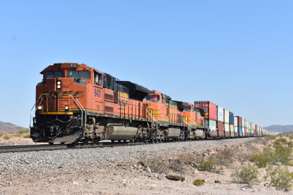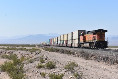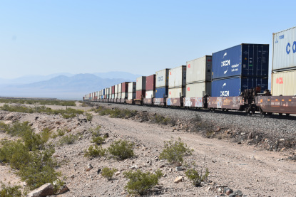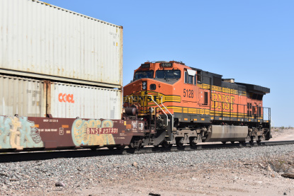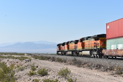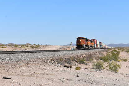 7/6/2020 We got up and I showered as Elizabeth, my brand new wife, packed. We left and took Interstate 5 to CA 57 to CA 60 and then Interstate 40 and stopped at MacDonald's where I had my usual hot cakes and sausage. We drove next to Barstow where we gassed up the car. We then drove to Ludlow where I then drove old US 66. At Ash Hill we found an eastbound BNSF stack train and drove almost to Siberia where we crossed the tracks and set up for Elizabeth's first ever pictures on Ash Hill.