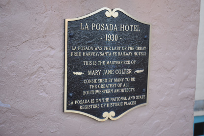 The plaque outside the from entranace. I started the basis of this story before we looked at Carl Morrison's photos of our wedding and a video of the ceremony. Then it was time to go out and photographed the Southwest Chief arrival in Winslow this early evening.