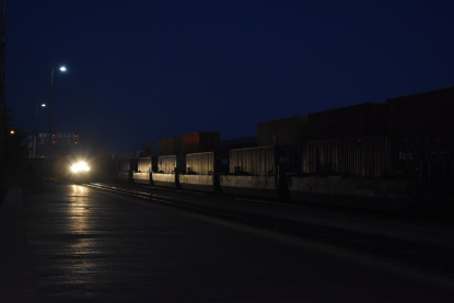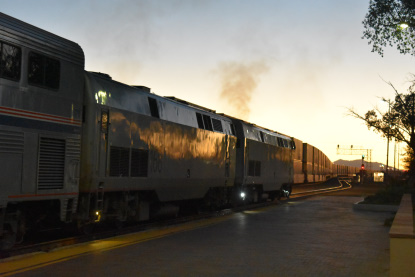 Amtrak's Southwest Chief train 4 made a quick stop for no passengers in Winslow tonight. We returned to Albert Einstein Room to write the story and then go to bed.