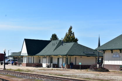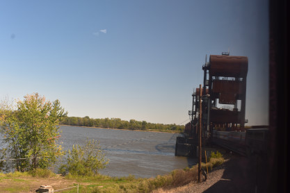 10/5/2020 I got out of bed at 7:15 AM while Elizabeth slept in. I went to the Dining Car for a bowl of Fruit Loops and an orange juice. After breakfast I went to a table in the lounge car where I enjoyed a cinnamon roll as the train was forty-five minutes late and we were now in Iowa. I had slept all the way from Colorado through Nebraska and into Iowa. I chatted with the conductor before I got my computer and wrote yesterday's story was we sped east across Iowa. Elizabeth soon woke up and had her breakfast. She got her morning things done on her computer while I returned to the room to finish the story. She was proofing it for me as the train arrived at Ottumwa and I wanted her to shoot the steam engine there.