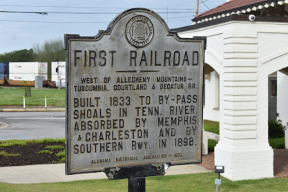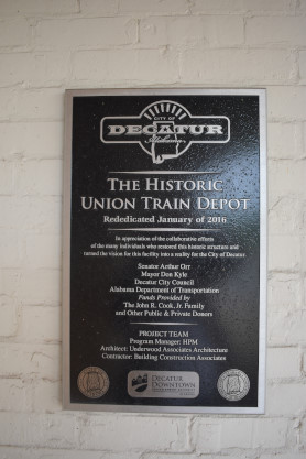 The Decatur historical sign about the station.